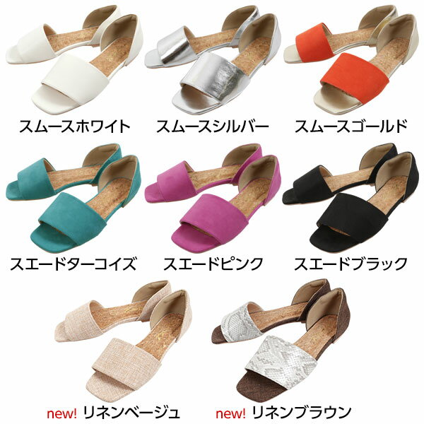 ワンベルトスクエアトゥフラットサンダル レディース シューズ ぺたんこ オープントゥ 歩きやすい ぺたんこ 秋 夏 パンプス ワンベルト スクエアトゥ 黒 白 シルバー おしゃれ きれいめ 上品 大人カジュアル かかとつき [I1772]【入荷済】【送料無料】