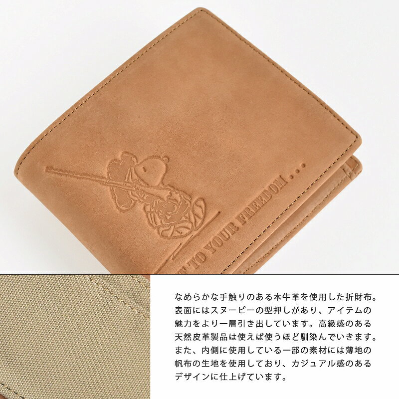 商品カテゴリ:【キャメル】【カーキ】【ネイビー】【茶】【灰】【紺】 折り財布 メンズ レディース 女性用 男性用 男女兼用 ユニセックス 折財布 ショートウォレット ウォレット 本革 牛革 リアルレザー PEANUTS ピーナッツ スヌーピー 型押し やわらかい ロゴ 絵本 アニメ 有名 キャラクター 使いやすい かわいい おしゃれ ナチュラル
