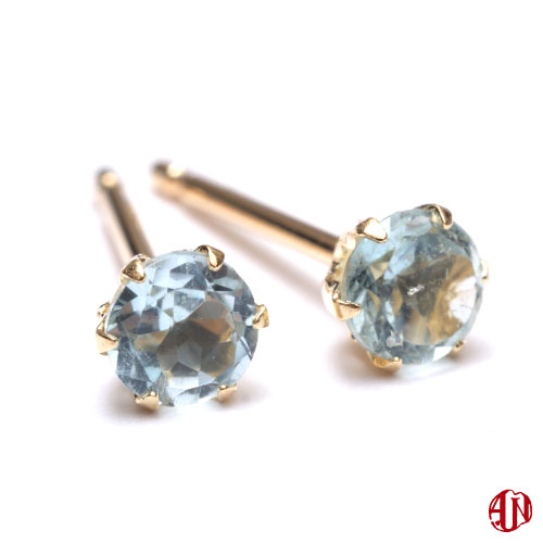 ◆セカンドピアス◆ スイスブルートパーズ 約4mm K18 YG スタッドピアス 「トパーズ」 身に着けると心に余裕が生まれ、持ち主にとって必要な物が見つかったり、会いたい人に出会える良縁の石として人気です。