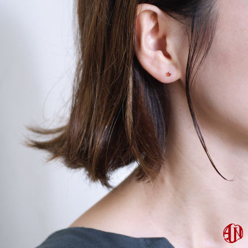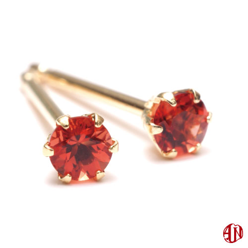 ◆セカンドピアス◆ アンデシン 約3mm K18 YG スタッドピアス 「アンデシン」 鮮やかな赤色のレッドアンデシンはチベットのラサ市で採石された聖石です。