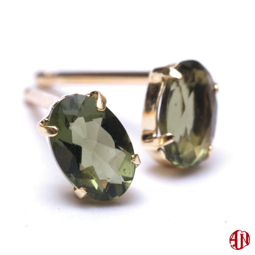◆セカンドピアス◆ モルダバイト オーバル チェコスロバキア K18 YG モルダバイトは、1480万年前の隕石の落下による衝撃で地表の物質と隕石の成分が溶解して形成された神秘の天然ガラスです。