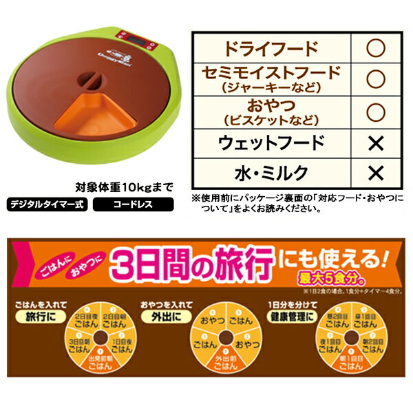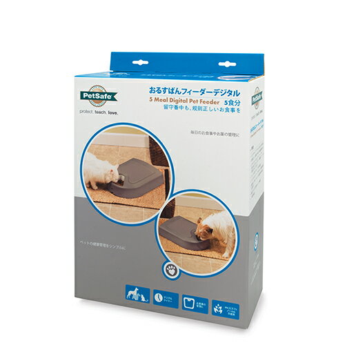 ○【送料無料(北海道・沖縄は除く)】おるすばんフィーダー デジタル5食分(フード/ボウル/餌/ごはん/お留守番/自動給餌器/犬/猫/ペット用/タイマー/セット/長期/旅行/不在)