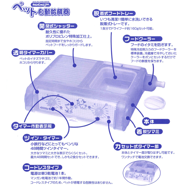 犬 猫 ペット 用品 自動 餌やり器 日本製 クリアーブルー